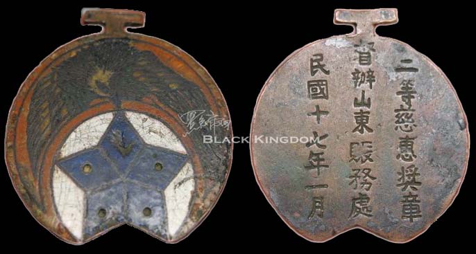 四等金色慈惠章,金星二(缺上三星),背镌四等金色慈惠章字样,余同。