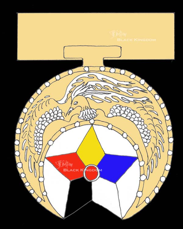 五等宝光慈惠章,外围饰珍珠十六颗,中嵌白宝石,饰以珍珠五颗,背镌五等宝光慈惠章字样,余同。
