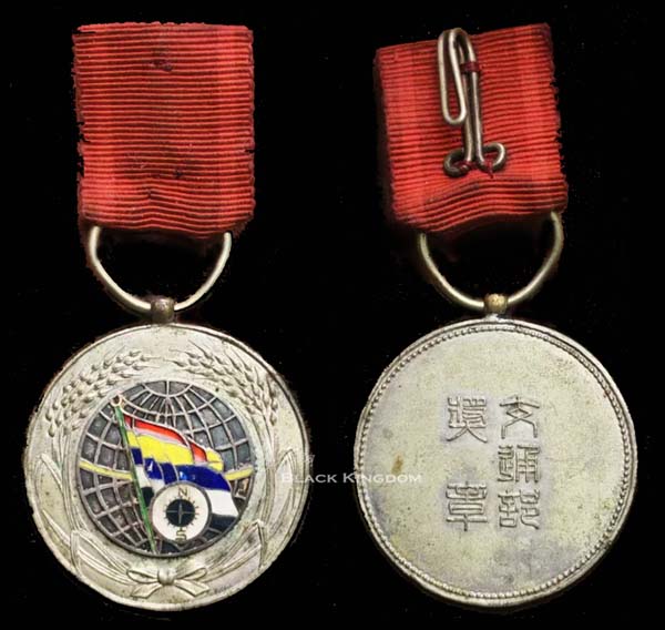 名誉奖章 银质镀金,中圆地球,外廓五瓣,瓣间星芒各三出