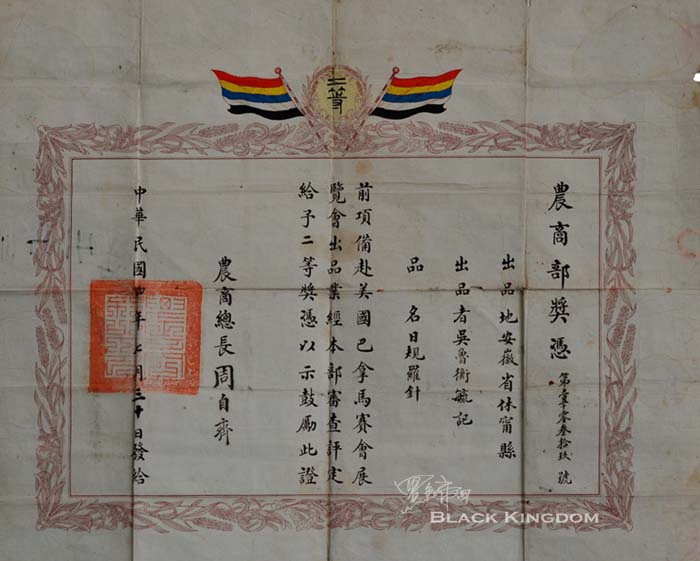 农商部二等奖章,保存非常完好(图片来自百度贴吧)