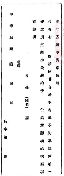 湖北省兴学奖章执照
